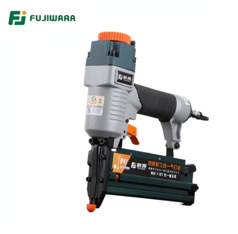 Без проблем забивает гвозди, дюбеля и прочие крепежные элементы. Работает от двигателя нагнетателя давления до 160 пси. Ресурс работы 300 000 часов. Есть сменная кассета со скобами, гвоздями. Мощность 300 ватт, размер 27 на 15 см. Отлично подойдет для ремонта и строительства, прост в управлении.