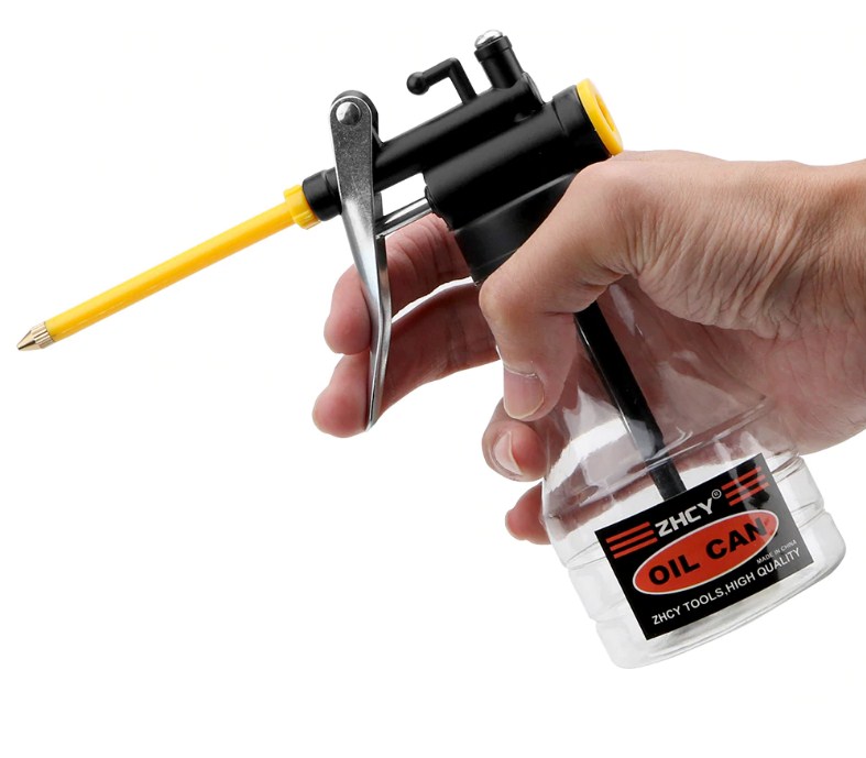 Выполнен в виде пистолета с тонким соплом и рычагом. Емкость на 350 мл жидкости, сделан из прочного пластика. Удобная конструкция, можно использовать для смазки деталей, элементов, рабочих узлов и агрегатов.
