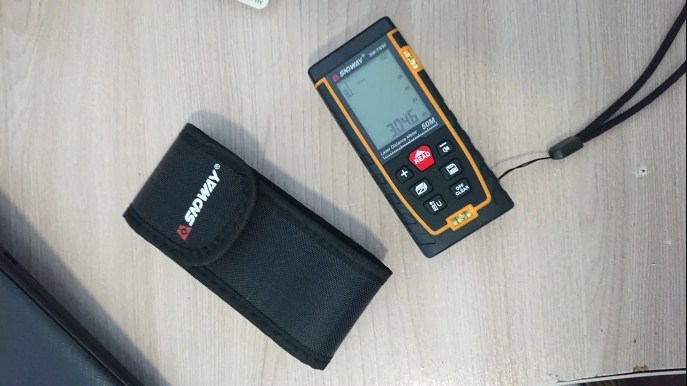 Высокоточный портативный дальномер, способный автоматически подсчитывать площадь и объём помещений. Работает от двух ААА‑батареек. Для заказа доступны модели с максимальной дальностью измерения от 40 до 120 м. Погрешность измерений — ± 2 мм.