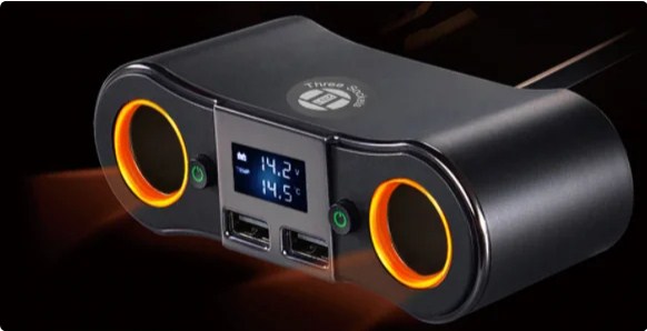 Разветвитель позволит одновременно производить зарядку сразу двух устройств. Корпус выполнен из крепкого пластика. Максимальные значения по выходному току 3,5 А. Есть небольшой цифровой дисплей, а также два USB-порта 2,0.