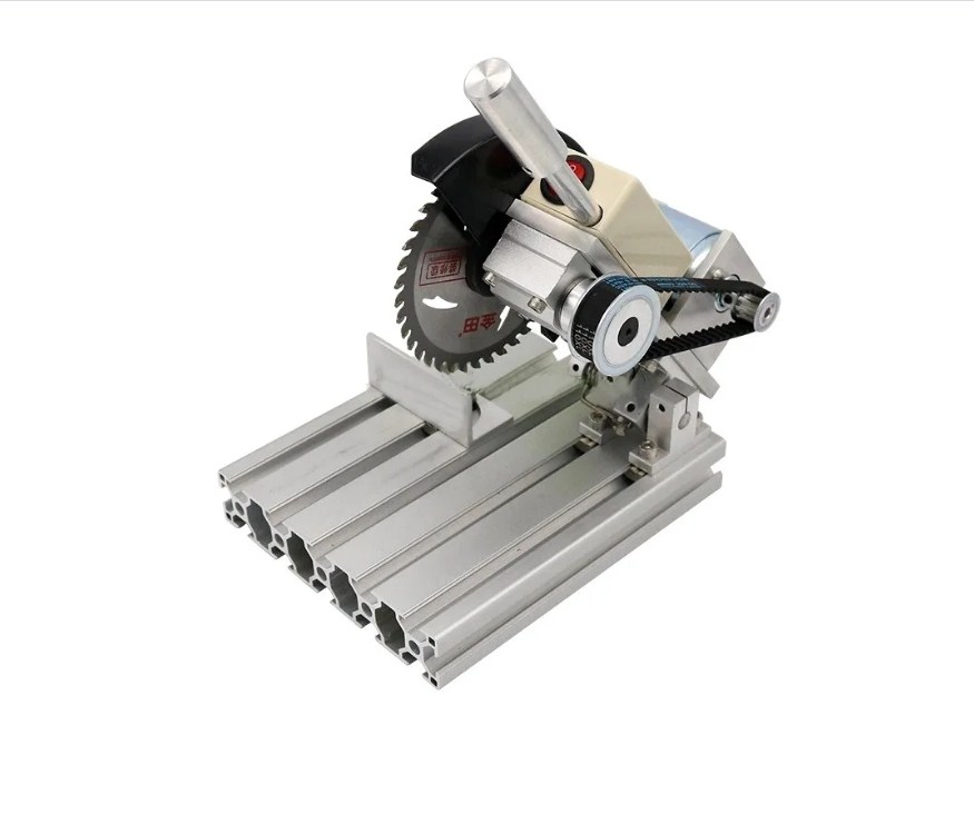 Электрическая настольная пила, циркулярный механизм пилы служит для распила металлических и деревянных материалов. Для вращения используется клиноременная передача с питанием от сети 220 вольт. Мощность электроинструмента 360 вт.