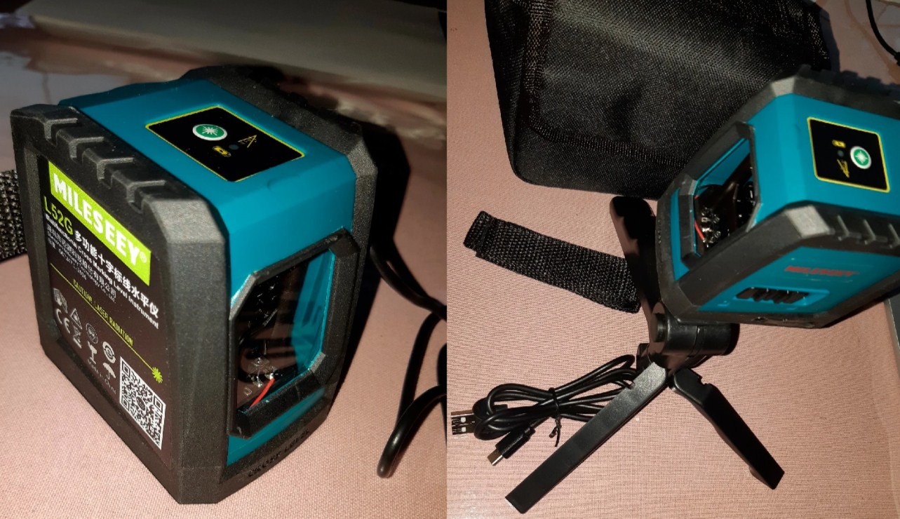 Благодаря магнитам в тыльной части уровень можно прицепить к металлической поверхности. Сверху находится световой индикатор, он загорается при неровной установке. Из минусов: по центру луч ярче, чем по краям; отсек для батареек маловат, из-за этого их сложно заменять.