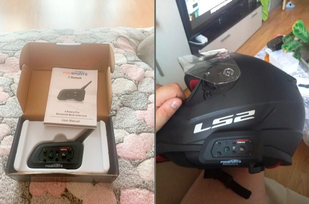 Думаю, по фотографии понятно, что это гарнитура в первую очередь предназначается для крепления на мотошлем. Позволяет отвечать на звонки нажатием одной кнопки, может использоваться в качестве переговорного устройства.