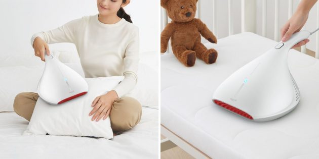 Ещё один ручной пылесос Xiaomi очищает мягкую мебель, одеяла, подушки и матрасы от пыли, мелкого мусора и пылевых клещей. Устройство просушивает обрабатываемую поверхность нагретым воздухом при температуре 50 °С и дезинфицирует её с помощью встроенной УФ‑лампы.