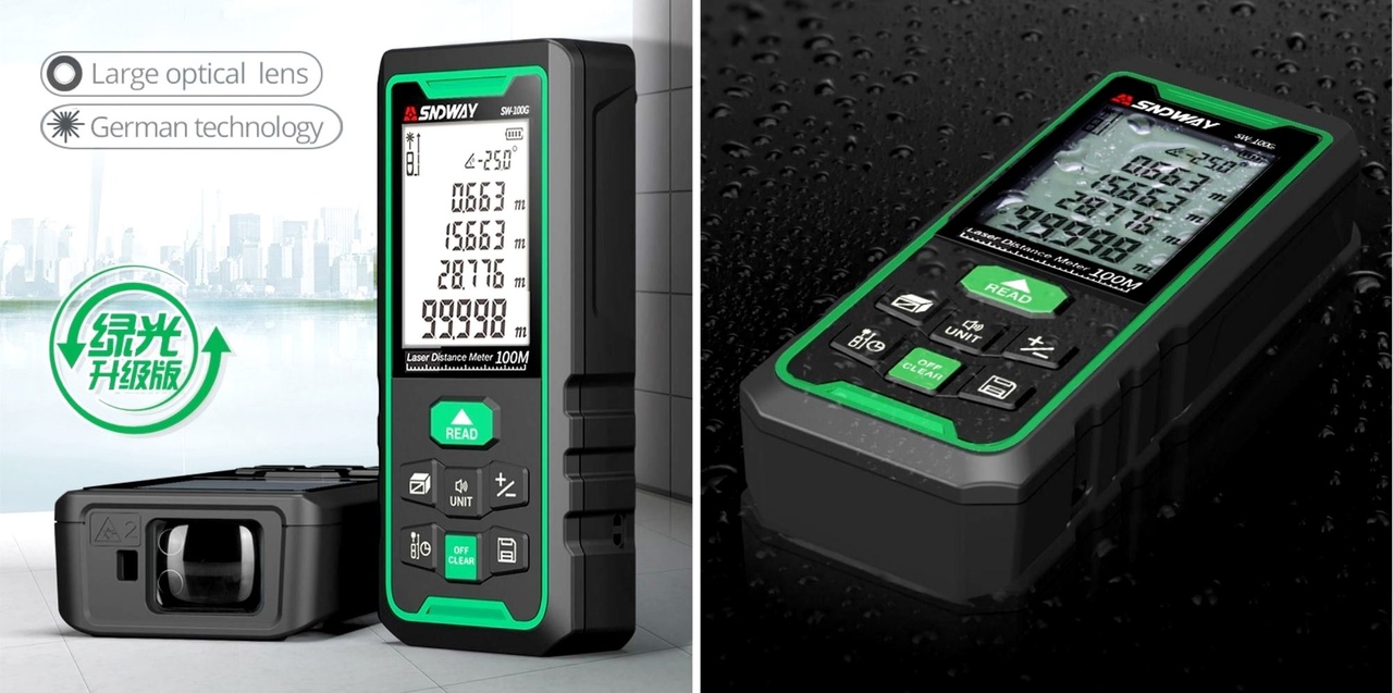 Это незаменимый помощник для тех, кто занимается строительством с нуля. Элементарный в обращении прибор поможет в считанные секунды определить расстояние между точками, безошибочно вычисляя площадь заданных участков. При этом можно сохранять полученные данные в памяти устройства, что очень удобно при выполнении расчётов. Стоит отметить и внушительную дальность действия прибора, варьирующуюся в диапазоне 40-100 метров.