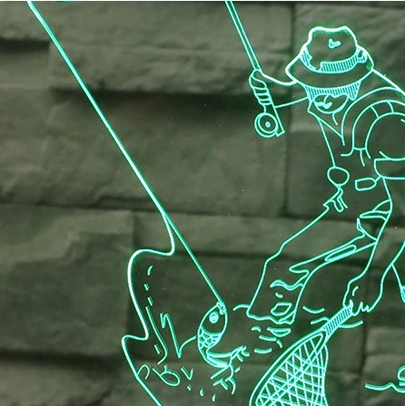 Ночной светильник светодиодного типа, представляет собой форму рыбака. Есть режим смены цветов освещения, обладает 3D визуализацией. Ночник изготовлен из абс пластика, мощность устройства 0,5 ватт. Работает от аккумулятора заряжаемого через кабель usb.