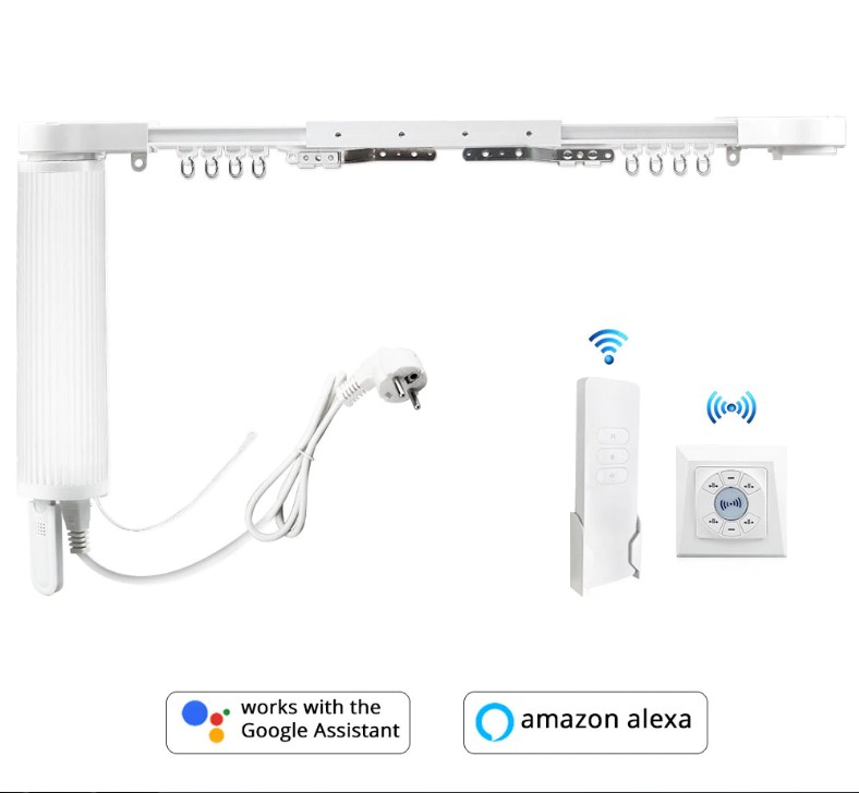 Умный карниз работает за базе электродвигателя, который по команде автоматически открывает или закрывает шторы. Можно приобрести пульт ДУ, а можно управлять со смартфона или другими датчиками. В приложении есть возможность настроить открытие и закрытие штор по расписанию. Будет отличным приобретением для современного жилья.