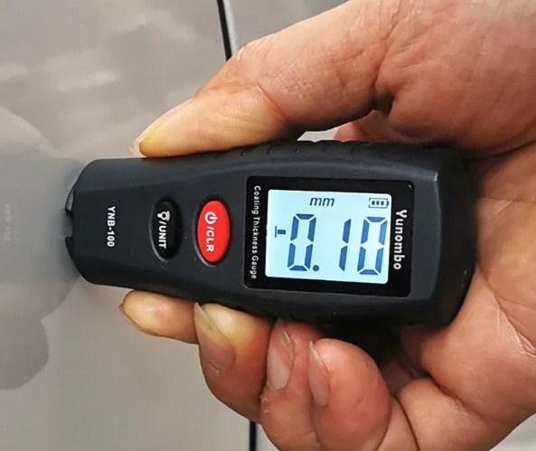 Всем известное устройство для измерения толщины лакокрасочного покрытия. Можно узнать был ли автомобиль в ремонте и каков был масштаб проблемы. Незаменимая вещь при покупке машины.
