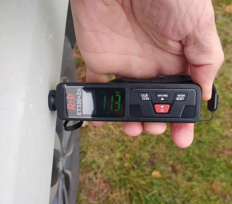 Предназначен в качестве измерения толщины лакокрасочных покрытий на металле и прочих материалах. Имеет металлический контактный тип измерения в диапазоне от 0 до 1500 мкм. Во время измерения данные отображаются на экране, есть звуковой сигнал.