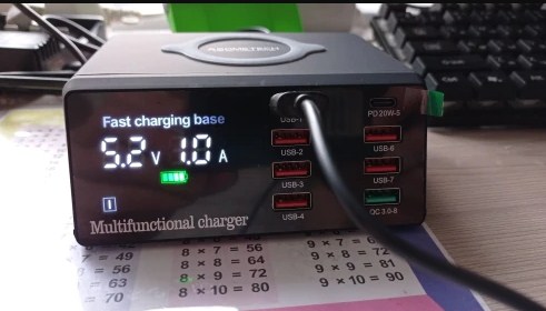 USB-адаптер позволит одновременно подзаряжать несколько гаджетов. Суммарная выходная мощность устройства – 40 Вт. На крупном светодиодном дисплее отображается сила тока и мощность для каждого из портов.