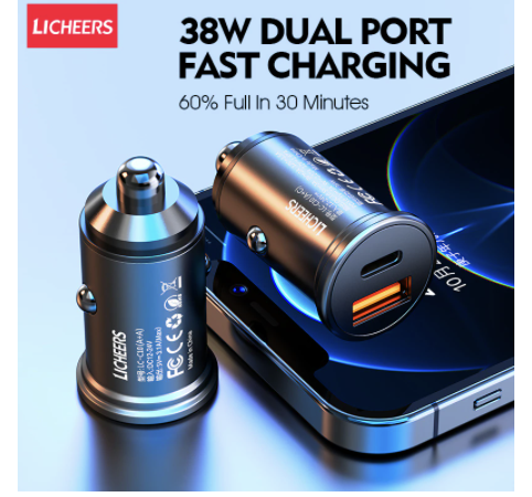 Автомобильная зарядка для ваших гаджетов от прикуривателя с двумя USB портами. Мощность - 38W. Есть поддержка всех современных протоколов быстрой зарядки.