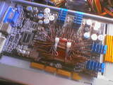 На чипы памяти видеокарты были наклеены радиаторы. Эти радиаторы были напилены из кулера от второго пентиума. На ключах питания платы (наверное они так называются) была предустановлена алюминиевая пластинка, на эту пластинку наклеил кусок от старого радиатора. Для наклейки использовался АЛСИЛ-3.