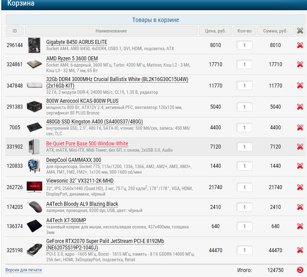 И вот, все комплектующие были куплены. С учётом того, что я продал свои старые «железки», апгрейд мне обошелся всего в 84750 рублей.