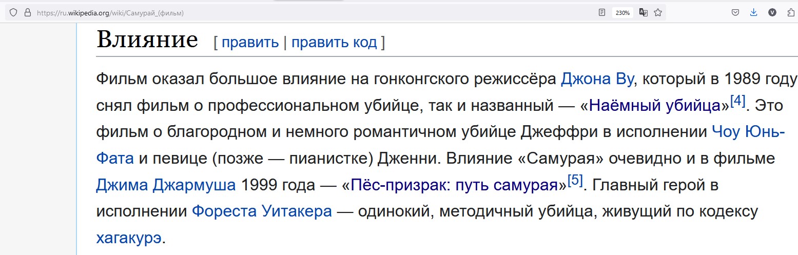 Пёс-призрак: Путь самурая 1999 год - один из лучших фильмов Фореста Уитакера. Это переосмысление картины "Самурай" 1969 года. Причем оба фильмы смотрибельны и сейчас. Не быстрые и философский. Некоторые подобное называют "Плагиат", другие обозначают "Вдохновлялся". Актер продвинул картину в массы и она осталась в памяти многих специалистов.