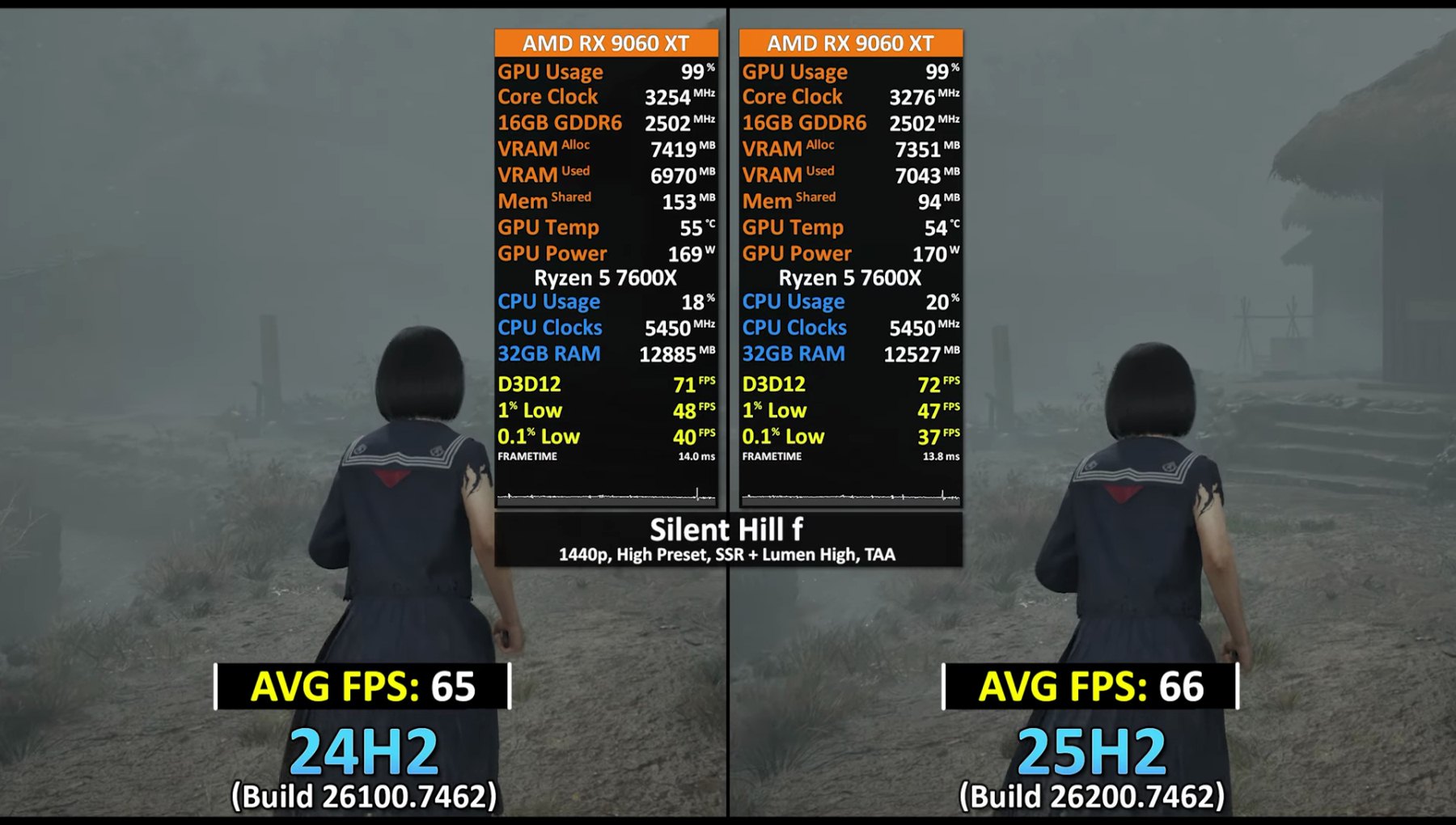 Как показали тесты, разницы между двумя версиями Windows 11 практически нет — в частности, в таких играх, как Counter-Strike 2, Cyberpunk 2077, Marvel Rivals, Star Wars Outlaws, Starfield и Black Myth: Wukong показатели средней частоты кадров были идентичны, тогда как в ARC Raiders, The Last of Us Part II Remastered, Assassin's Creed Shadows, Silent Hill f, Horizon Zero Dawn Remastered и The Elder Scrolls IV: Oblivion Remastered различались всего на 1 fps.