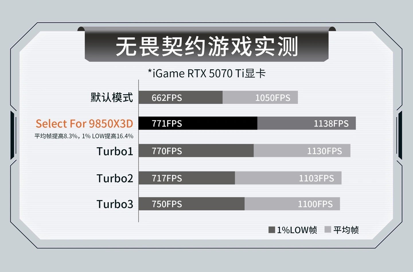 В настоящее время поддерживается только два процессора, Ryzen 7 9800X3D и Ryzen 9850X3D, и две материнские платы, CVN B850M ARK Frozen и CVN X870E ARK Frozen. Тесты в Valorant, опубликованные производителем, показали, что использование нового режима обеспечило для сборки с Ryzen 7 9850X3D и GeForce RTX 5070 Ti повышение средней частоты кадров на 8,3 % и показателя 1% low на 16,4 %.