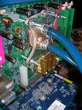 Когда она закончилась, была уже середина лета, как то не до этого, и свадьба на носу, точно не до крышек! Но в августе, появилось время и мы с супругой отправились в город на Неве. Прибыв туда вспомнилось, где-то тут можно заказать ВБ! Не долго пришлось искать где. В первый же день был установлен контакт с человеком, через которого можно заказать то, о чем так долго я мечтал. В результате, через неделю(!) в моих руках уже были 2 ВБ(проц+видео) и помпа. По прибытию домой, был найден радиатор от печки КрАЗа, который вполне меня устраивал по габаритами(380*170*90) и материалом из которого изготовлен – медь. Система была собрана и начала свою работу! Ах! Как было страшно при первом пуске! Включаешь!! И!! Короткое журчание воздуха по трубкам и работа одного вентилятора в БП навело страх и система была обесточена. Почему? Потому что я привык к громкой работе боксового кулера от 531-го и пропеллера видеокарты, а тут на тебе, журчание…