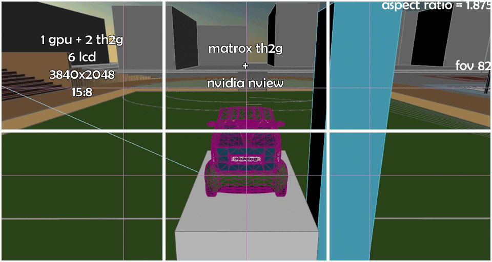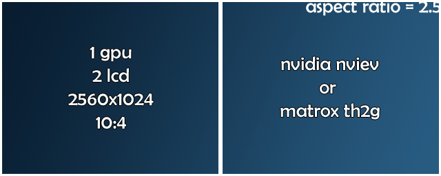 2. 1 видюха, 2 монитора работающие либо через нвидия нвью, либо триплхед в режиме 2х мониторов, единственный минус - рамка по середине, там где должен быть прицел