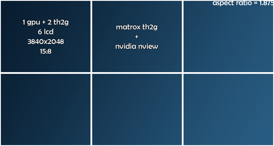 4. 1 видюха (либо СЛИ\КФ), 6 мониторов, 2 триплхеда, работающие парно через нвидия нвью