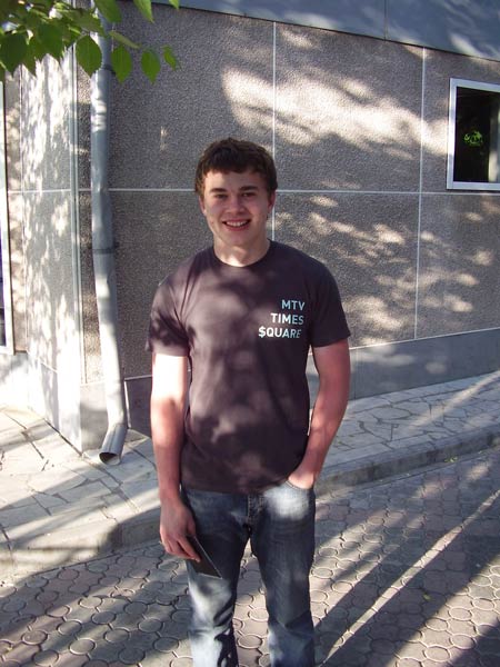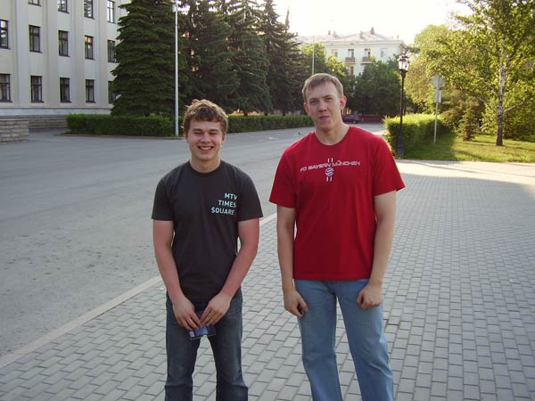 Присутствовали JacKER, FallAlex и я (Анугмыч). Без пяти минут я уже стоял на месте сбора. Почти в ровно подошел FallAlex. Отдал мне Battlefield 2 (а я думал у кого он!? ). Подождав еще минут 10 он созвонился с JacKER'ом. Еще через несколько минут подошел и он. Сразу скажу, что погода была не особо благоприятная. Дневная свежесть куда-то делась и на ее место пришла безветренная духота. В тени нас кушали мошки, а на жаре стоять было невыносимо. Когда подошел JacKER, мы обменялись болванками и решили пойти в какую-нить крытую кафэшку с холодным пивом. Сфотографировав JacKER'а и FallAlex'а мы побрели в сторону кафе.