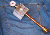 Фото2. Тепловая трубка( на фото с ацетоном, красная стрелка манометра- атмосферное давление, черная показывает разряжение, после тепловой обработки)