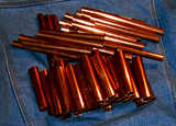 Нарезал трубок для зоны конденсации. Начал ножевкой по металлу, но быстро надоело. Пришлось брать болгарку. После этой нарезки вся комната была покрыта красивой медной пылью