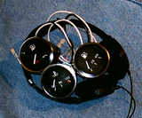 Указатель уровня топлива, будет указывать уровень тосола в расширительном баке. Указатель температуры будет указывать температуру. А эконометр я все же использую в проекте «молчаливый» вместо вакуумметра. Наушники на фото использованны для удержания приборов в фотогеничном виде, а то падают на бок.