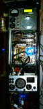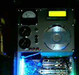 Амперметр показывает ток, потребляемый системным блоком, ниже автомобильный указатель уровня топлива, поставлен для индикации уровня тосола в расширительном баке. Пока не подключен. Сейчас стоит расширительный бак сделанный из стеклоблока, он будет заменен на другой бак, как в статье /blog/clear66, только хочется заменить черный, страшненький поплавок на прозрачный и встроить в него светодиод, чтобы светился. Когда буду менять расширительный бак хочу попробовать, заодно, проверить - на сколько вырастет производительность системы водяного охлаждения, если поставить второй радиатор (от авто печки) Будет ли ощутимый прирост производительности? Стоит ли прирост, затрат на второй радиатор? Хочется так же поэкспериментировать с параллельным и последовательным включением двух радиаторов. Насос в моей системе мощный - GRUNDFОS, водоблоки включены параллельно. Результаты опубликую