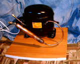 Пока выбирал компрессор, заела меня жаба. И приобрел я все-таки горшок подороже - ACC L57TN на 22 фреон. Ну насосется масло, внутри него, воды из воздуха, так поменяю масло. Зато можно из него смело забабахать фреонку на видеокарту. Или просто маленькую тихую в корпусе. Да чего угодно! А как приехал домой придумал небольшое усовершенствование. Не знаю, поможет или нет. Припаял на всасывающий патрубок фильтр-осушитель и Шредер. Шредер чтобы легко привинчивать манометрическую станцию, а фильтр что бы удалял влагу из воздуха. Объем фреонки небольшой и я думаю влаги там немного. Но посмотрим, не уверен.