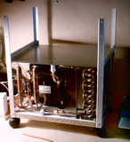 Но это все только предположения, основанные на конструкции осушителей воздуха. Есть такие девайсы. Их применяют для осушения воздуха в бассейнах и других сырых местах. Принцип действия такой, влажный воздух вентилятором продувают сквозь охлажденную трубу. Влага из воздуха конденсируется на трубе и стекает в накопитель, а осушенный воздух поступает в помещение.