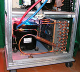 В новом, фреоновом корпусе смонтировал электрическую часть. Компрессоры подключил через автоматы. Все-таки положена защита и удобнее так. Сделал трансформаторный блок питания на 12 вольт. Это для вентиляторов и неонок. Почти собрал водянку. Сделал набросок панели управления.