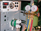 Две фреонки спаяны. Нижняя мощная вообще готова. Вот картинки заправки. Мощна зараза вышла. Микроконтроллер меряет температуру до -55. Так вот она, эта самая температура, дошла до -55 и включился сигнал тревоги. Так что какова она на самом деле не знаю. Но масло вроде не замерзает. Надо проверить под нагрузкой. Ну и конечно подрегулировать.