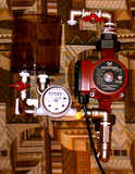 Сначала по водяному счетчику была измерена реальная производительность под рабочей нагрузкой. Нагрузка – три ватеркуллера. Засекалось время пяти оборотов первого слева циферблата. Один оборот соответствует 1 литру. Время в секундах. Секундомер мне к сожалению достать не удалось. Засекал время по электронным часам. Потом пересчитывал в более привычные литры в час.