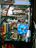 Произведу замеры температуры всех заметно греющихся деталей материнки, до и после максимально возможного разгона, без обдува платы вентилятором. Потом попробую охладить все, что греется свыше 70 градусов, и разогнать еще. Буду знать нагрев чего, мешает разгону. Возможно, это поможет поднять частоту шины выше 195 Mz. Сейчас мать отказывается работать на частоте выше 195. Думаю, эта процедура поможет мне снизить количество корпусных вентиляторов, (зная что, греется можно, что- то охладить водой, что- то пассивными радиаторами.) Теперь корпусные вентиляторы - самые шумные компоненты, хотя и работают от 5В.