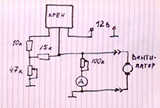 Для индикации напряжения на вентиляторах стоят стрелочные вольтметры сделанные из амперметров по стандартной схеме. Построечным резюкм 100 кОм, шкала откалибрована так - середина шкалы-5в. Максимум-10в. Реобас на КРЕН больше 10,5в не дает.