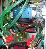 В режиме idle температура процессора охлаждаемого Igloo 7700 MC не особенно отличается от температуры полученной при использовании водяного охлаждения. Но, как оказалось, радоваться было рано. При запуске S&M компьютер через несколько минут завис. К сожалению, такой разгон оказался Igloo 7700 MC не по зубам. Ничего страшного, жидкостное охлаждение - все-таки жидкостное и "воздуху" с ним спорить тяжело.