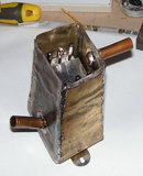 Потом, предварительно залудив края заготовок, спаиваем. Перед пайкой латунные листы зачищаются до металлического блеска наждачной бумагой и облуживаются припоем ПОС-61 с обычным спирто-канифольным флюсом. Пайка производилась паяльником мощностью 100Вт.