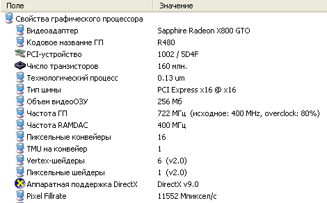 Вообще в недалеком прошлом все видеокарты X800GTO2 Limited edition оснащались GPU R-480, но в последнее время стали появляться и на R-430. Поэтому я решил рассеять свои сомнения программой Everest. Оказалось, все в порядке R-480. Но, самое удивительное, это то, что оказались активными все 16 конвейеров. Видимо Sapphire Technologies решила немного упростить жизнь простым смертным пользователям, которые не могут похвастаться глубиной знаний в области осуществления перепрошивки. Вот и славненько, перехожу к делу.