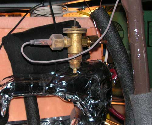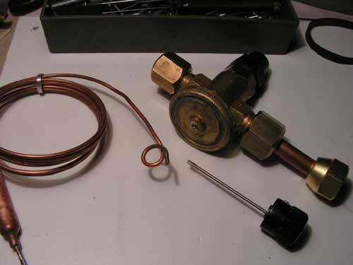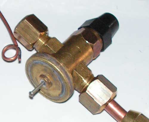 Можно играть двумя параметрами - уставкой пружины, вращая регулировочный винт, и и вторым, верхним винтом, заменяя им воздействие термобаллона, заставляя вентиль открываться сильнее или слабее, в зависимости от нагрузки на испаритель. Теперь, правда, в ручную.
