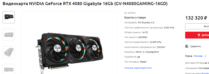 Согласитесь, что флагман может быть только один. Даже если такая видеокарта стоит 190 тысяч, то обязательно найдутся те, кто её купят, а вот GeForce RTX 4080 за 132 тысячи выглядит странно. Данный продукт сильно переоценён, ведь прошлое поколения стоило на целых 500 долларов дешевле. При этом вы платите довольно внушительную сумму, но получаете ещё и 16 Гб видеопамяти. Пожалуй, в данном случае намного логичнее смотрелась бы 320-битная шина с 20 Гб памяти, но Джесен Хуанг пожадничал, в итоге высокая здесь только цена. Вообще, GeForce RTX 4080 способна запускать любые игры в 4К на максимальных настройках графики, но каждый раз, когда смотришь на эту видеокарту, то понимаешь, что чего-то ей не хватает.