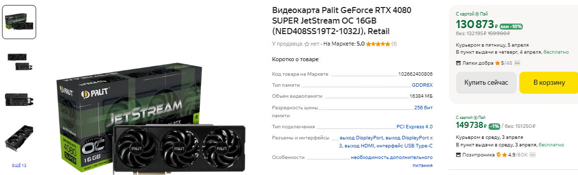 Сегодня в продаже можно встретить GeForce RTX 4080 SUPER, которая поступила в продажу в январе 2024 и считается одной из самых перспективных флагманов на рынке. На этот раз Дженсен Хуанг не стал перегружать геймеров дополнительным ценовым бременем, а в результате за видеокарту просят 999 долларов в США. В Европе цена формируется в пересчёте на евро, а после прибавляется таможенный взнос и НДС. В российской рознице сюда нужно учесть ещё и санкционные риски, поэтому назвать GeForce RTX 2080 SUPER выгодной не поворачивается язык. В итоге можно констатировать, что за 5 лет мы видим подорожание на 300 долларов, хотя не всё так очевидно. В своё время GeForce RTX 2080 SUPER была самой быстрой потребительской видеокартой на рынке, тогда как сегодня балом правил GeForce RTX 4090. Даже избалованные вниманием производителей американские геймеры с трудом находят флагман за 1900 долларов, ну а в российской рознице за него просят немыслимые 240 тысяч рублей и дороже.