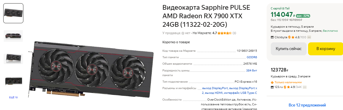 С производительностью понятно, а вот с ценами в российской рознице всё куда сложнее. За сильно подержанную GeForce RTX 2080 SUPER просят около 40 тысяч рублей. Если вы всегда мечтали о флагмане, то смело берите эту видеокарту, ведь без трассировки лучей она тянет любые игры в 2К без ограничений. Для 4К такую видеокарту покупать не стоит, а если учитывать стоимость GeForce RTX 4080 SUPER, то вы экономите целых 90 тысяч рублей. За 70 тысяч можно собрать неплохой системный блок, а 20 тысяч оставить на приличный 2К-монитор. Очевидно, что потенциал у GeForce RTX 4080 SUPER намного выше, но когда всё сводится к экономии, то законы логики уже не кажутся такими логичными. Добавим, что привычка узко мыслить присуща ограниченным людям, ну а мы с вами можем обратить внимание на Radeon RX 7900 XTX. Это не самая лучшая видеокарта AMD в истории, ведь продажи её стремятся к нулю, а рыночная доля оказывается на уровне статистической погрешности. Если бы такой видеокарты не существовало, ничего бы не изменилось, но раз уж она есть, то вам стоит о ней знать.