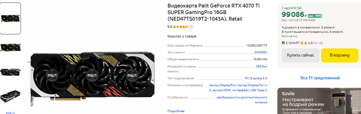 По чистой производительности Radeon RX 7900 XTX обходит GeForce RTX 4080 SUPER, хотя в трассировке лучей всё же немного отстаёт. У видеокарты AMD целых 24 Гб памяти и высокая пропускная способность благодаря 384-битной шине. Если не включать трассировку, то в 4К GeForce RTX 4080 SUPER окажется примерно на 10-15% медленнее во всех играх, хотя и стоит дороже. Мы не агитируем вас покупать ту или иную видеокарту, но знать свои возможности полезно для кошелька. Фанаты дядюшки Хуанга продолжают покупать GeForce RTX 3080 Ti, которая уже морально и физически устарела. Видеокарта имеет 12 Гб видеопамяти и не способна обеспечить максимальные настройки графики в 4К. Трассировка лучей влияет на GeForce RTX 3080 Ti самым пагубным образом, а в качестве альтернативы вы можете рассмотреть GeForce RTX 4070 Ti SUPER. Многие эксперты считают её лучшей видеокартой NVIDIA в своём ценовом диапазоне. Обратите внимание, что здесь присутствует 16 Гб памяти, а производительность выше, чем у GeForce RTX 3080 Ti.