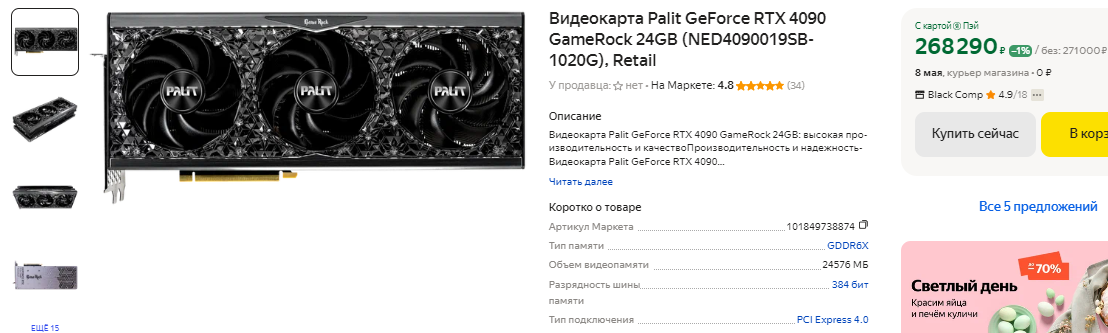 Прежде всего нужно понимать, что все GeForce RTX 4090 массивные и очень тяжёлые. Специалисты советуют обеспечить максимально высокий прижим и надёжное крепление даже в случае покупки бюджетного решения. Хотя, в случае с флагманом NVIDIA понятие бюджетности неприменимо. Например, за GameRock производства Palit просят 270 тысяч рублей. У большинства геймеров таких денег нет, но сегодня мы обойдёмся без критики в адрес зажиточных мажоров. Данная модель близка по габаритам с эталонной и имеет в длину 329 миллиметров. По сравнению с видеокартами за 60 тысяч рублей даже эта модель кажется настоящим гигантом, но в реальности всё познаётся в сравнении.