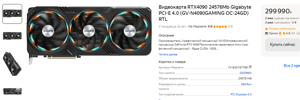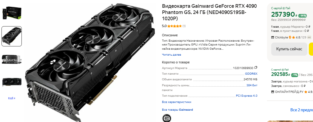 У Gainward есть любопытная линейка Phantom, обладающая неплохой системой охлаждения и референсным размером в 329 миллиметров. Такая модель не будет слишком тяжёлой и обойдётся в 260 тысяч рублей. Повторимся, система охлаждения достаточна для обеспечения стабильной работы, но может оказаться слишком простой при попытке разгона. Увы, но NVIDIA уже выжала из графического чипа все соки ещё при производстве. А вот видеокарта Gigabyte длиннее на целых 10 миллиметров. Советуем её ставить на массивную материнскую плату, на которой достаточно места для размещения флагманского графического чипа. Дополнительное крепление обязательно, а сама видеокарта не только хорошо выглядит, но и порадует фанатов подсветки. В тестах заметных отличий от продукции Palit не наблюдается, но фанаты всё равно готовы переплачивать 30 тысяч. Разгонный потенциал указанной выше видеокарты Gigabyte крайне посредственный, но вам всегда может попасться удачный экземпляр.