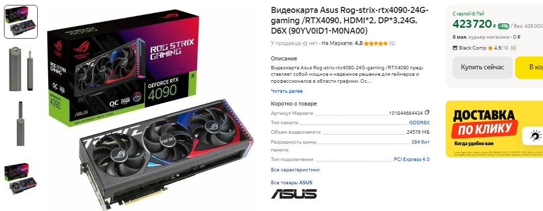 Asus не выпускает недорогую продукцию, ну а серия ROG-STRIX относится к флагманским. Позволить себе такую видеокарту могут только состоятельные мажоры, для которых важен имидж, а не деньги и реальная производительность. Эта видеокарта имеет длину в 357 миллиметров и требует максимально надёжного крепления. Ставить её на компактную материнскую плату мы вам крайне не рекомендуем, но для обладателей 420 тысяч свободных рублей покупка солидного компьютера не является проблемой. Помните, что даже запатентованные кулеры Asus не обеспечат вашей GeForce RTX 4090 разгонный потенциал. Эксперты рекомендуют избавиться от заводских вентиляторов и установить нормальную систему жидкостного охлаждения. В этом случае вы вправе рассчитывать на дополнительные 5% к быстродействию. Вообще, флагман и без этого обеспечивает максимальное качество графики в любых играх, поэтому подобные действия интересны лишь небольшому количество состоятельных энтузиастов.