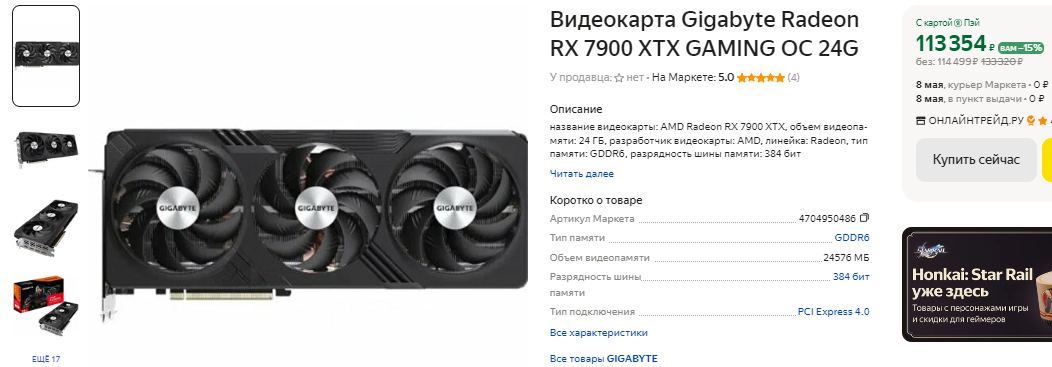 Как бы там ни было, но с тех пор на маркетплейсах подорожали компьютерные комплектующие, а цены иногда оказываются даже выше, чем в официальной рознице. Хорошие предложения всё ещё есть, ну а особой популярностью пользуются видеокарты. Флагманы и без того стоили дорого, ну а сегодня за не самую дорогую GeForce RTX 4090 придётся выложить 270 тысяч рублей. Для некоторых такая сумма кажется незначительной, вот только большая часть любителей компьютерных игр смотрит на подобные предложения с удивлением. А ведь под эту видеокарту вам потребуется процессор, блок питания, оперативная память и многое другое. Получается, что конечная цена системы достигнет 400 тысяч рублей. Что же, если вы действительно имеет на руках 270 тысяч и присматриваетесь к хорошей видеокарте, то сегодня самое время взять себя в руки и купить AMD.