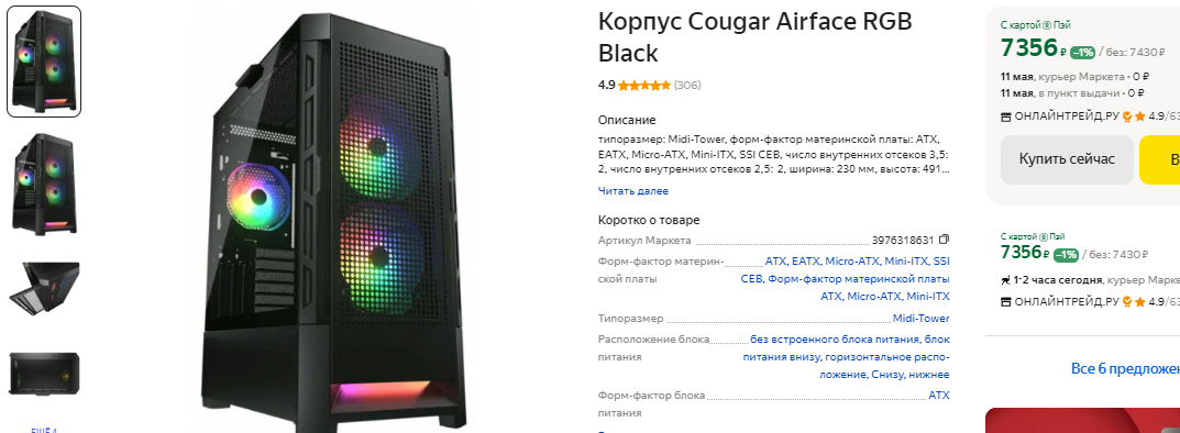 Мы решили не усердствовать с выбором корпуса, остановившись на системном блоке Cougar Airface RGB Black. Конструкция большая и не подходит для расположения на рабочем столе. Что же, собранный комплект требует много свободного пространства, ну а встроенные вентиляторы будут эффективно отводить горячий воздух наружу. Если подсчитать, то у нас осталось чуть меньше 10 тысяч рублей, а значит мы потратили на одну из самых быстрых игровых сборок 260 тысяч. Можете израсходовать эти деньги на вечеринку, порадовав знакомых горячительными напитками. Ну или докупите ещё несколько корпусных кулеров. Radeon RX 7900 XTX не славится горячим нравом, но это всё равно флагман, а на носу лето, поэтому такая инвестиция будет весьма кстати. Как видите, мы без труда выбрали игровую сборку за 270 тысяч рублей, которая предлагает ультимативную скорость и стоит столько же, сколько просят за GeForce RTX 4090. Учтите, что флагманы NVIDIA ещё и часто горят, а значит ваша видеокарта за 270 тысяч рублей может выйти из строя на ровном месте. Если вы пытались экономить, купив GeForce RTX 4090 за 250 тысяч у перекупщиков, то придётся ремонтировать видеокарту за свои средства. Многие эксперты считают, что Radeon RX 7900 XTX была незаслуженно обделена внимание энтузиастов, но ситуацию уже не исправить. К счастью, разумные геймеры умеют извлекать выгоду там, где другие видят только проблемы, ну а мы предложили один из вариантов, позволяющих максимально эффективно инвестировать 270 тысяч в игровой компьютер.