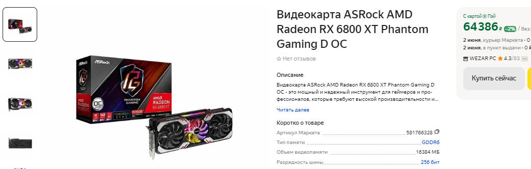 Новую Radeon RX 6800 вы можете встретить за 59 тысяч рублей. Это немногим меньше того, что просят за GeForce RTX 4070, а значит никакого смысла в покупке Radeon RX 6800 сегодня нет. Видеокарта давно растеряла свой потенциал, хотя и годится для актуальных игр. С такой видеокартой вы ещё долго не будете испытывать неудобств, но стоимость её слишком высокая для решения трёхгодичной давности. За Radeon RX 6800 XT придётся выложить почти 65 тысяч, ну а учитывая всё сказанное выше – это неприемлемо. Немногим дороже есть GeForce RTX 4070 SUPER, переиграть которую уже не удастся. Покупать новые Radeon RX 6800 XT и Radeon RX 6800 мы вам не рекомендуем, ну а теперь посмотрим, сколько обе стоят в подержанном состоянии.