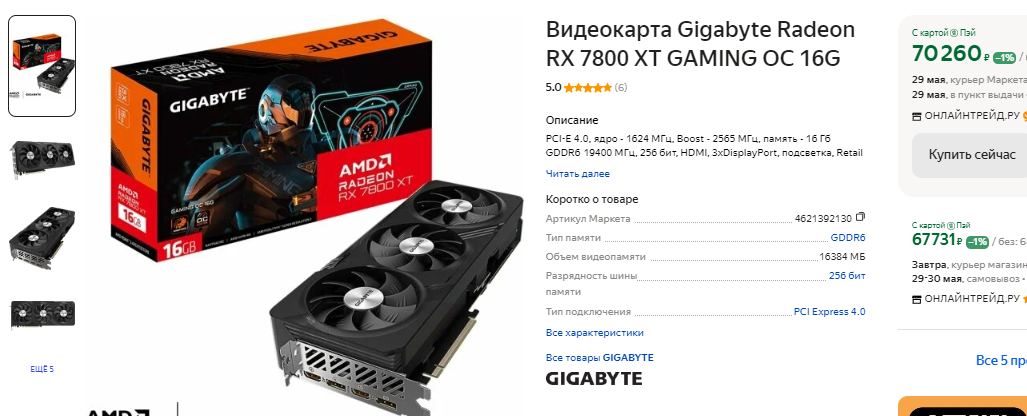 Очень крутая модель Radeon RX 6800 продаётся за 45 тысяч рублей. На первый взгляд такое решение кажется выгодным, но в конечном счёте вы можете получить видеокарту с минимальным жизненным циклом. Продавец пишет, что Radeon RX 6800 в идеальном состоянии, ну а это может говорить о том, что видеокарта долгое время копала криптовалюту. Ничего хорошего в этом нет, ведь интенсивное использование в режиме 24/7 приводит к печальным последствиям. 47 тысяч просят за Radeon RX 6800 XT, которая также идёт в идеальном состоянии, а значит могла работать на ферме. Обычно майнеры меняют старую систему охлаждения, получив почти новую видеокарту на выходе. Учитывая тот факт, что новая стоит на 20 тысяч рублей дороже, то однозначного мнения о том, стоит ли покупать Radeon RX 6800 XT нет и быть не может. Нам она кажется слишком дорогой, но фанаты AMD могут предположить, что перед ними крайне выгодное предложение. 16 Гб памяти кажутся привлекательным, но не всегда очевидный выбор оказывается верным.